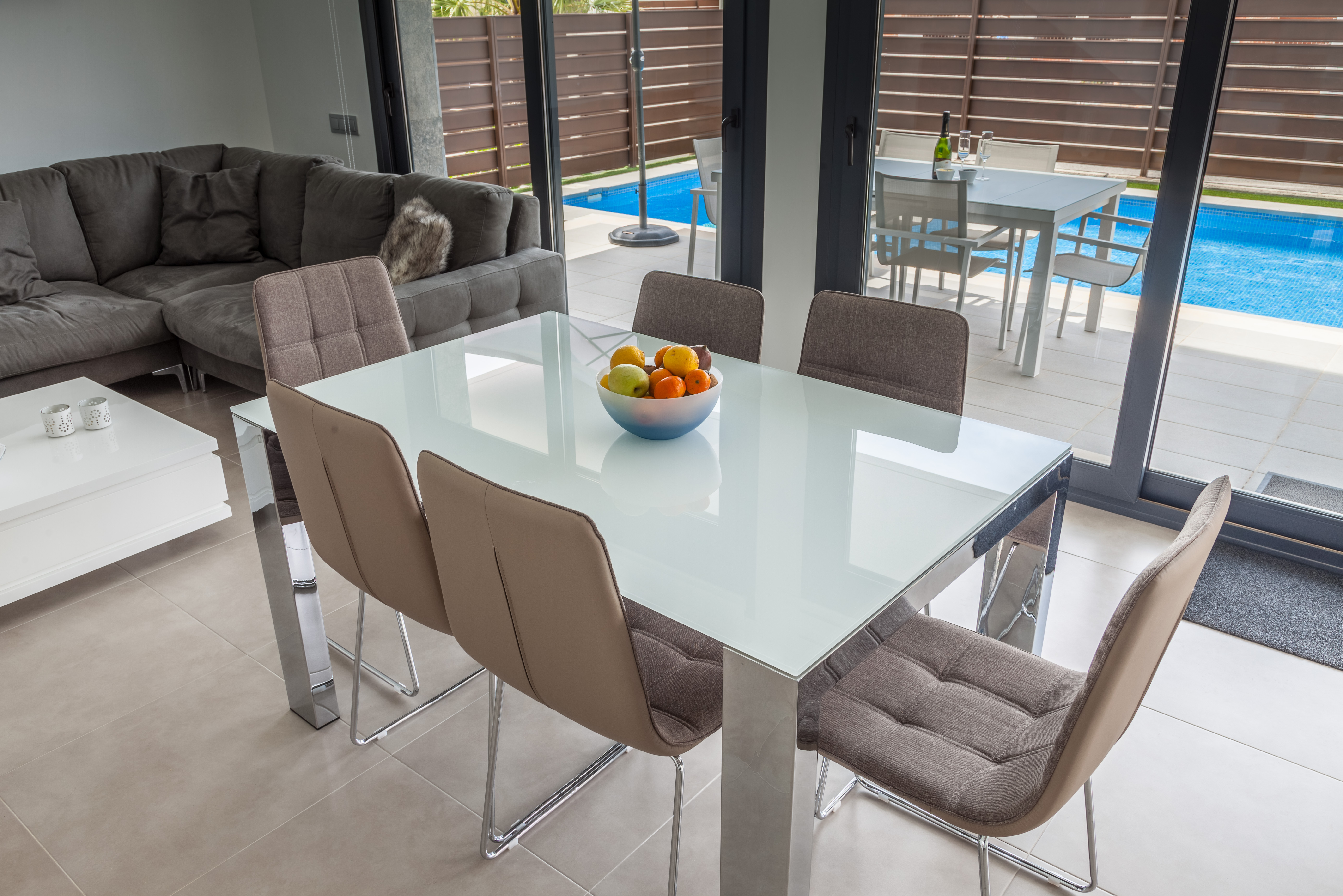 De villa is volledig uitgerust met airconditioning, rolgordijnen, rolluiken, twee badkamers, apparaten van topmerken, WIFI en een televisie met alle Belgische, alle Nederlandse en zeer vele internationale zenders en Netflix